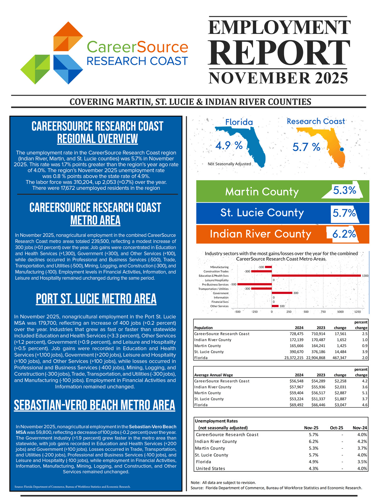 Click here for the current Employment Report for CareerSource Research Coast.