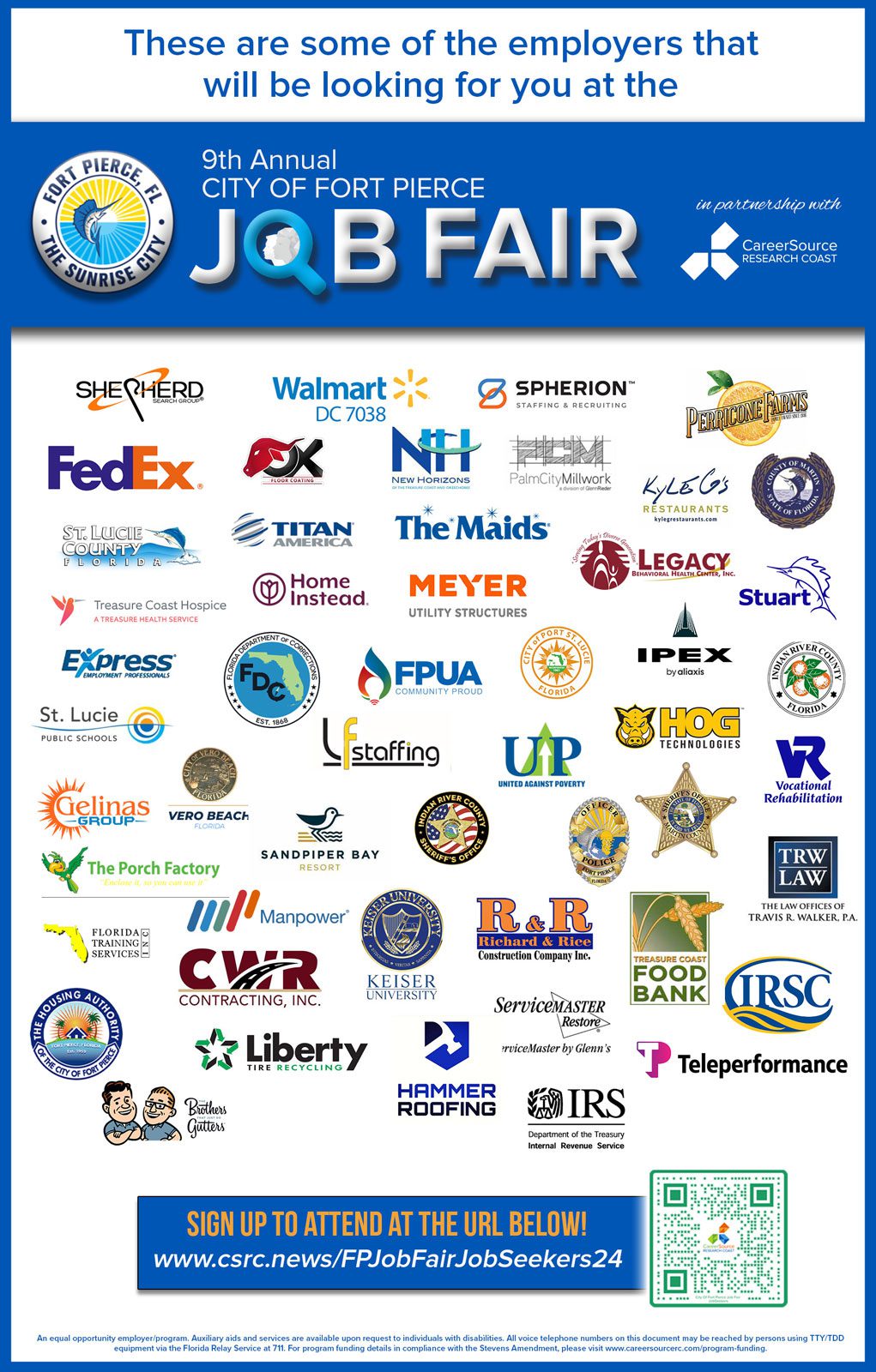CareerSource Research Coast is an equal opportunity employer/program and veteran's preference employer. Auxiliary aids and services are available upon request to individuals with disabilities. All voice telephone numbers on this website may be reached by persons using TTY/TDD equipment via the Florida Relay Service at 711.